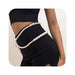 Las perlas tienen ese poder silencioso: aportan elegancia sin ser estridentes. La combinación de perlas de distintos tamaños en esta cadena crea un juego de volúmenes que enmarca la cintura y acentúa el hueco sobre la cadera, ese pequeño detalle que, curiosamente, atrae muchas miradas. Dos hileras de perlas caen con gracia sobre las caderas, aportando una geometría sofisticada y un equilibrio visual muy favorecedor.