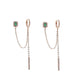 Estos pendientes combinan una doble sujeción asimétrica con un contraste de color que atrapa miradas: una piedra de zirconio verde se posa junto a la cadena en oro rosa, creando un juego de luces que resulta espectacular. El diseño tipo cadena aporta movimiento y elegancia informal, ideal tanto para eventos como para dar vida a un look de diario.