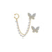 El pendiente de mariposa combina motivos de alas tanto en la base como en la extensión. Algunos pequeños cristales incrustados y una perlita en una de las cadenas aportan destellos y textura: es como llevar un rayo de sol con aleteo. Además, su efecto bicolor —oro y plata— potencia el brillo y le da ese toque sofisticado que parece obra de artesanía milimétrica. ¿Romántica? ¿Rebelde? Este pendiente entiende ambas cosas.